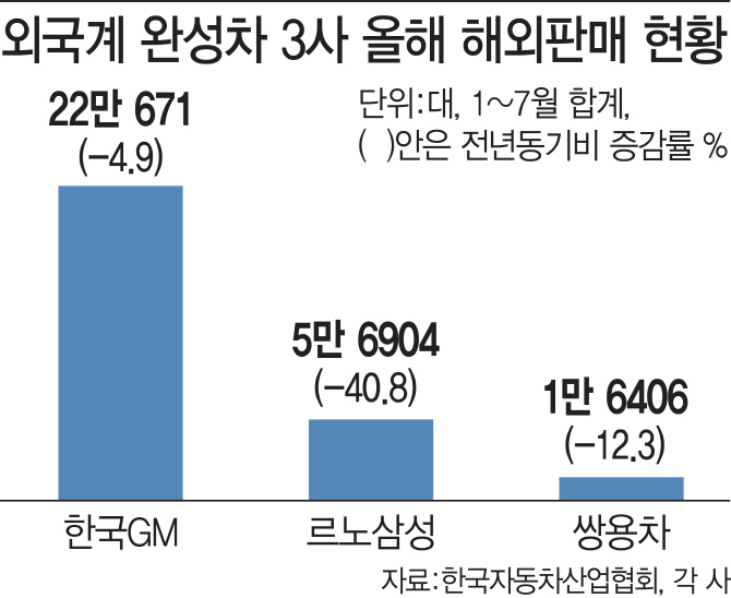 김필수 대림대 교수는 “르노삼성, 한국GM, 쌍용차는 내수는 물론 수출 시장에서도 경쟁력을 가질만한 차가 많지 않다는 게 문제”라며 “수출 부진이 계속되면 국내 완성차 업체 가운데서도 3사의 고민이 커질 것”이라고 말했다.