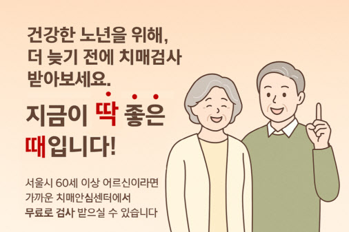 시는 올해 치매 검진을 받지 않은 60세 이상이면서 치매를 진단받지 않은 모든 시민에게 치매 조기 검진을 시행하는 한편 치매 유병률이 증가하는 연령인 만 75세 진입자 및 만 75세 이상 독거어르신을 대상으로도 집중 검진을 시행할 계획이다.