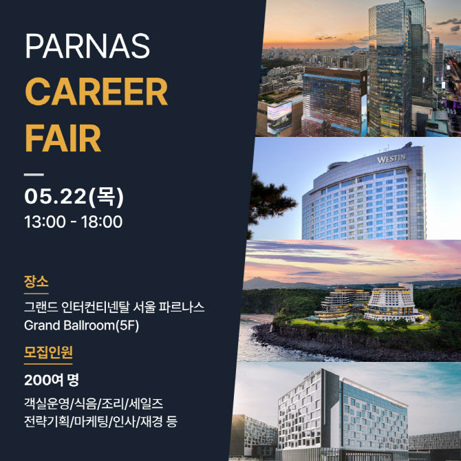 파르나스호텔 관계자는 “이번 커리어 페어는 단순한 채용 행사를 넘어, 파르나스가 추구하는 인재 중심 조직문화와 실무 기반 성장 철학을 체험할 수 있는 기회가 될 것”이라며 “호스피탈리티 산업을 이끌 차세대 인재들과 함께 성장해 나갈 수 있기를 기대한다”고 전했다.