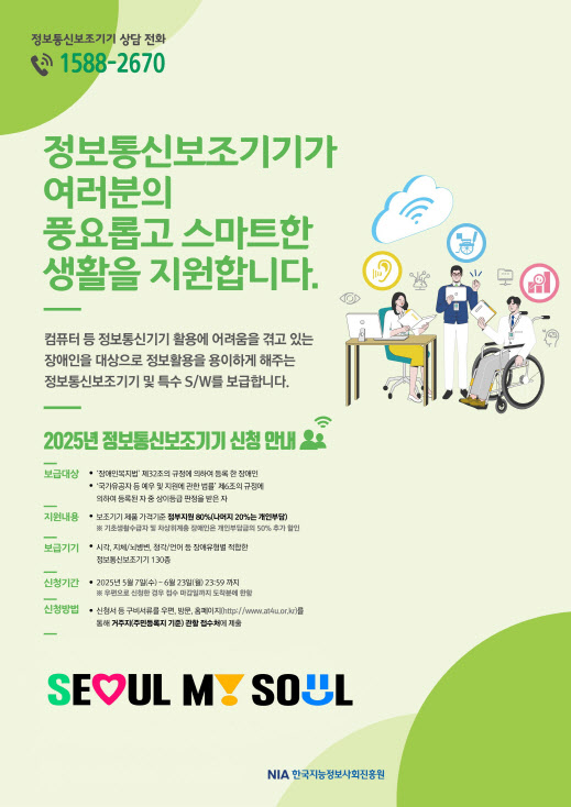 강옥현 서울시 디지털도시국장은 “이번 장애인 정보통신보조기기 보급사업은 장애인의 일상 속 정보 접근성을 높이고 사회참여 기회를 확대하는 데 큰 의미가 있는 만큼, 많은 분들이 맞춤형 기기 지원을 통해 실질적인 도움을 받으시길 바란다”고 말했다.