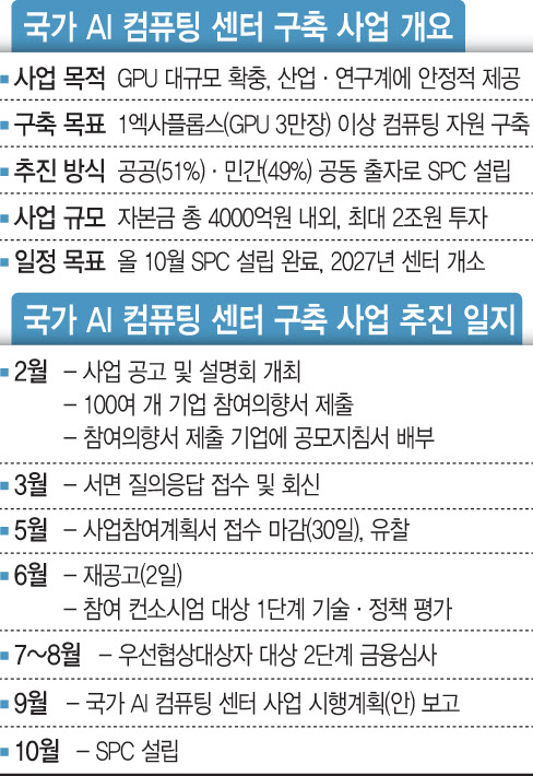 정부는대학과 스타트업의 심각한 GPU 부족 사태를 해결하기 위해 오는 2027년 국가 AI 컴퓨팅센터 개소 전 ‘연내 첨단 GPU 1만 장 확보’ 사업을 연계해 추진하고 있다. 업계 관계자는 “정부는 SPC 사업의 평가 우선순위에 따라 GPU 구매 대행 사업자도 우선 검토할 계획인데, SPC 우선협상사업자 선정이 늦어지면 영향이 불가피하다”며 “신속한 AI 인프라 구축을 위해 추경까지 해서 GPU 확보를 추진하는데 참여 기업을 못 구해 사업이 지연되는 것은 국가적으로도 큰 손해”라고 지적했다.