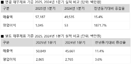 1분기 매출액은 571억9000만원으로 지난해 같은 기간에 비해 15.4% 증가했다. 당기순이익은 169% 성장한 27억4000만원을 기록했다.