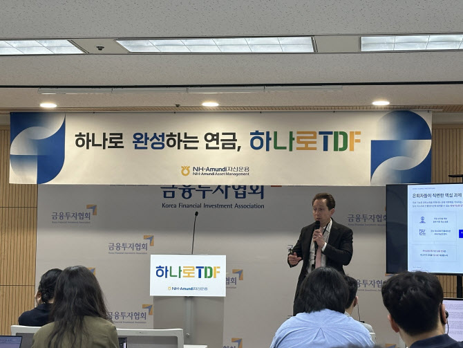 마티아스 샤이버 올스프링자산운용 멀티에셋 총괄은 15일 서울 여의도 금융투자협회에서 진행된 ‘하나로 타겟데이트펀드(TDF)’ 간담회에서 이같이 제시했다. NH-아문디자산운용은 올해 ‘하나로 TDF2025’로 TDF의 첫 목표시점(타겟데이트) 도래를 맞이한 데 따라 이날 간담회를 통해 은퇴 후 자금 운용 방안에 대해 제시했다. NH-아문디운용은 세계에서 처음으로 TDF를 출시한 올스프링자산운용의 자문을 받아 TDF를 운용하고 있다.