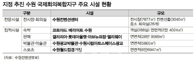 [이데일리 이선우 기자] 수원특례시가 ‘국제회의복합지구’ 지정에 도전한다. 2일 관련 업계에 따르면 수원은 최근 문화체육관광부에 국제회의복합지구 지정을 위한 운영계획을 제출했다. 수원이 국제회의복합지구 지정에 나서는 건 3년 전인 2022년 한 차례 고배를 마신 이후 이번이 두 번째다.