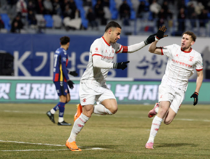 K리그2 PO 승자 부천은 8일 수원종합운동장에서 열린 하나은행 K리그 2025 K리그 승강 PO 2차전 원정 경기에서 K리그1 10위 수원FC를 3-2로 제압했다.