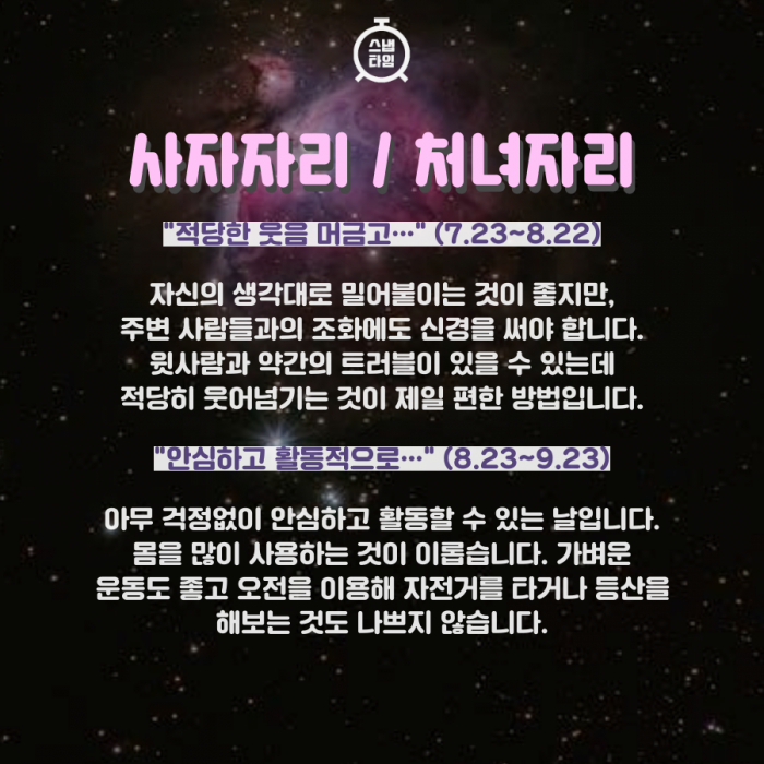 △처녀자리 : 안심하고 활동적으로…