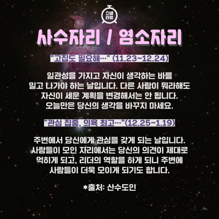 △염소자리 : 관심 집중, 의욕 최고…