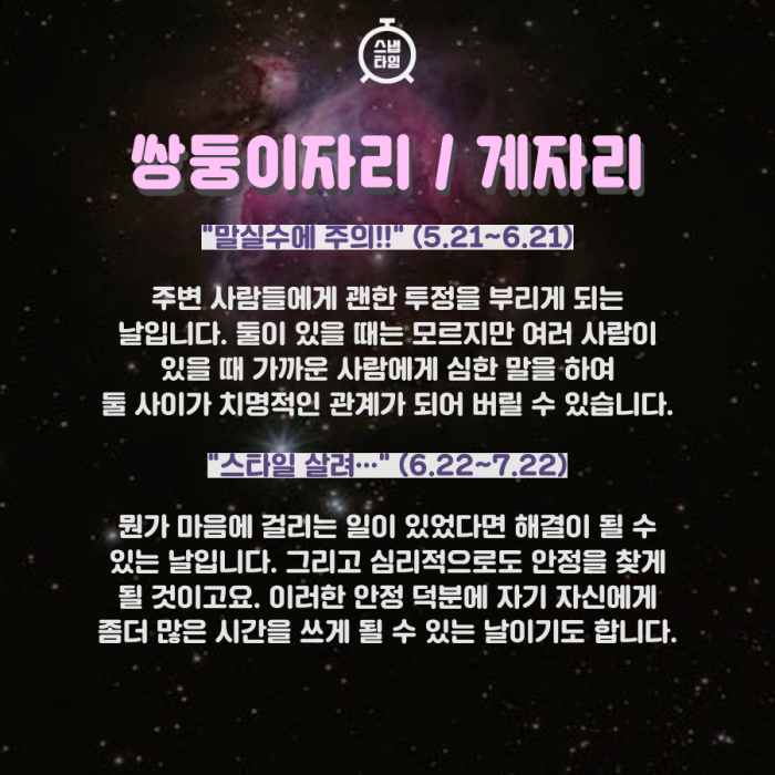 △쌍둥이자리 : 말실수에 주의!!