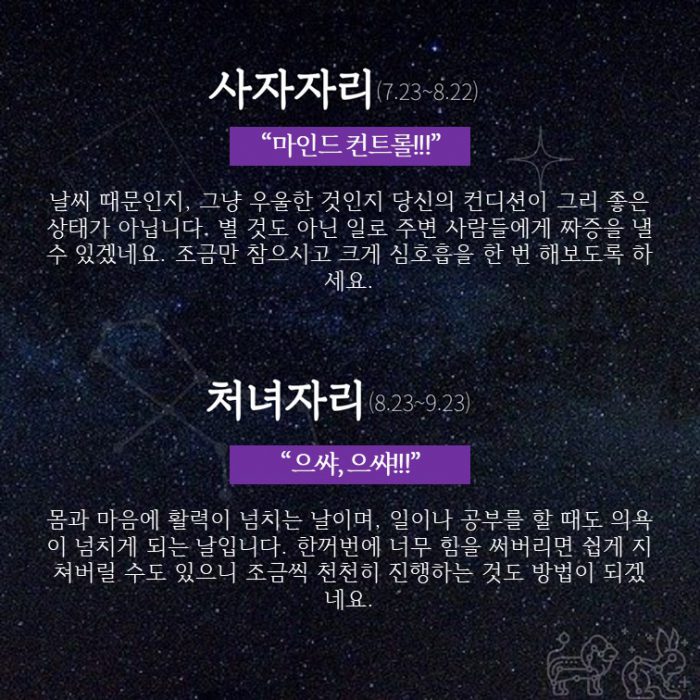 △ 사자자리 : 마인드 컨트롤!!!