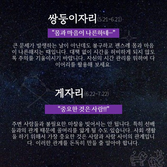 △ 쌍둥이자리 : 몸과 마음이 나른하네…