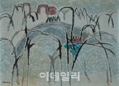 앞서 7일 진행한 서울옥션 제147회 경매도 사정은 비슷했다. 43년 만에 출현한 반추상화 ‘산’(1958)이 낮은 추정가 8억 9000만원을 넘기지 못해 유찰됐고, 십장생의 서정성을 듬뿍 얹은 ‘영원의 노래(B)’(1957)는 낮은 추정가 30억원을 낙찰가로 삼아야 했다.