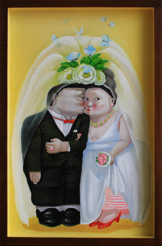 ‘결혼’(2017)에는 신랑·신부는 물론 턱시도와 웨딩드레스를 향한 시니컬한 시선까지 함께 넣었다. 우리의 뜨거운 욕망을 함부로 죽이지 마라, 해학이 넘치는 외침이다.