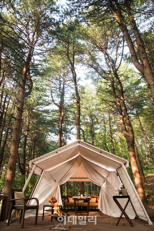 ▲100년 령 잣나무 숲 속 아난티 글램핑