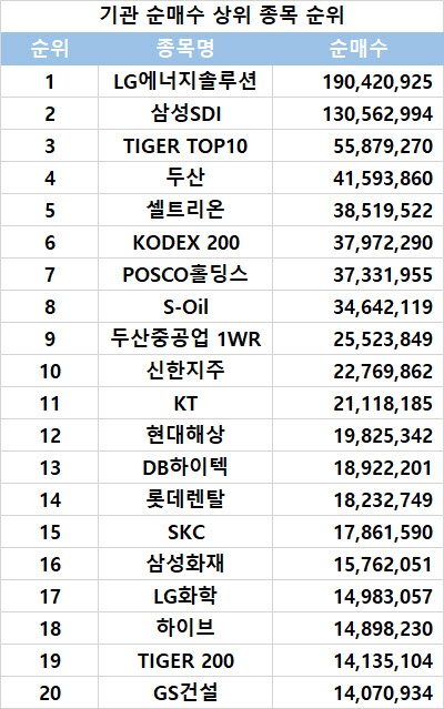 코스피 주간 기관 순매수 1위 'LG에너지솔루션'