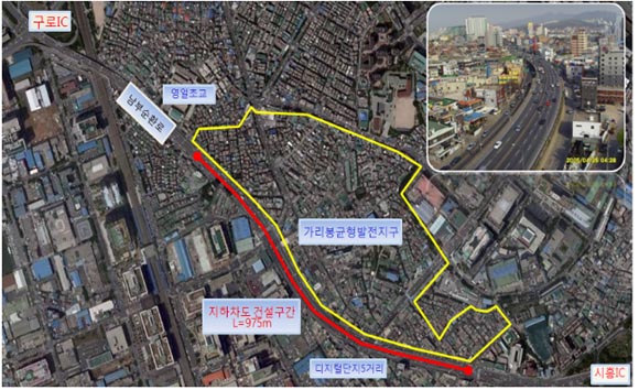 서울시는 이달말 관련 공사에 대한 설계용역을 발주해 입찰공고를 하고 설계사 선정 후 6월부터 용역에 착수할 계획이다. 내년 10월 착공할 계획으로 가리봉균형발전촉진지구 재정비 사업과 연계해 2014년 6월 완공할 예정이다.