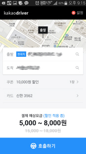 예상 금액은 5000원에서 8000원 사이였다. 기본료가 1만5000원부터 시작하지만 카카오가 이날 증정한 프로모션 쿠폰 1만원 할인이 적용됐다.