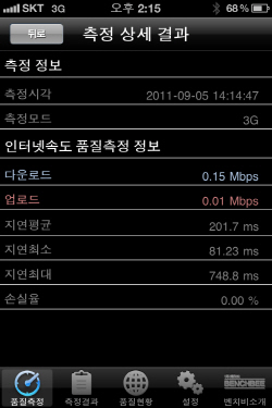 다운로드 속도는 KT가 2.26Mbps로 SK텔레콤의 0.15Mbps보다 빨랐고, 업로드는 KT 속도가 0.93Mbps, SK텔레콤 속도가 0.01Mbps로 나타났다. 광화문과 여의도 등 지역을 바꾼 2~3번의 추가 측정 역시 비슷한 결과가 나왔다.
