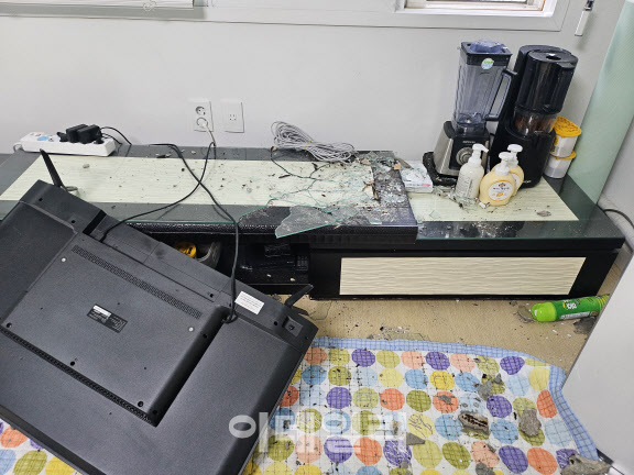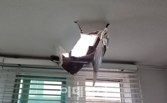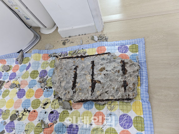 천장은 콘크리트 덩어리가 낙하한 모양대로 뚫려 있었고 그 아래 있던 TV와 TV장은 처참하게 파손돼 있었다. 박씨는 “남편이 항상 TV를 보던 자리인데 사고 당시 그 자리에 있었다면 생각만 해도 끔찍하다”며 “다른 집에서 이런 사고가 또 일어날 수 있다”고 불안감을 감추지 못했다.