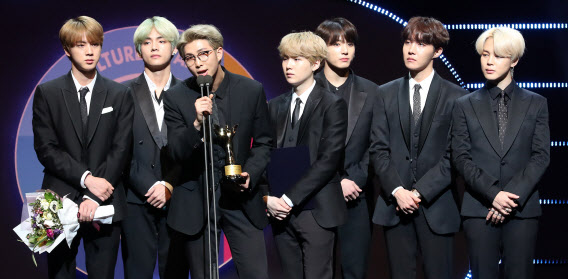 | | 2016년 열린 ‘제6회 이데일리 문화대상’에서 대상과 콘서트부문 최우수상을 수상한 그룹 방탄소년단(BTS)의 리더 RM이 소감을 말하고 있다(사진=방인권 기자). |