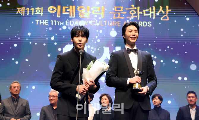 | | NCT 도영(왼쪽)과 쟈니가 ‘제11회 이데일리 문화대상’에서 대상을 수상한 뒤 수상 소감을 말하고 있다.(사진=방인권 기자) |