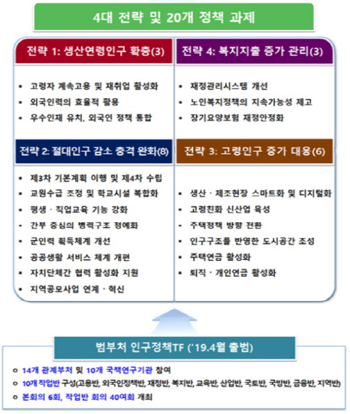 인구 문제 관련해 정부가 내다보는 지점은 좀 더 먼 곳이다. 고령화 다음에 닥쳐오는 게 노동력 부족이다. 이에 따라 정부는 인구구조 변화에 따른 대책의 일환으로 정년연장 방안을 집중적으로 살펴보고 있다.