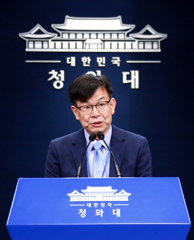 | | 김상조 청와대 정책실장이 지난 2019년 7월14일 오후 춘추관 대브리핑룸에서 내년도 최저임금 결정과 관련한 청와대의 입장을 밝히고 있다. 김 실장은 당시 문 대통령이 “대국민 약속을 지키지 못하게 된 것을 매우 안타깝고 송구스럽게 생각한다”고 밝혔다고 전했다.(사진=연합뉴스) |