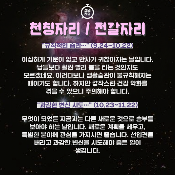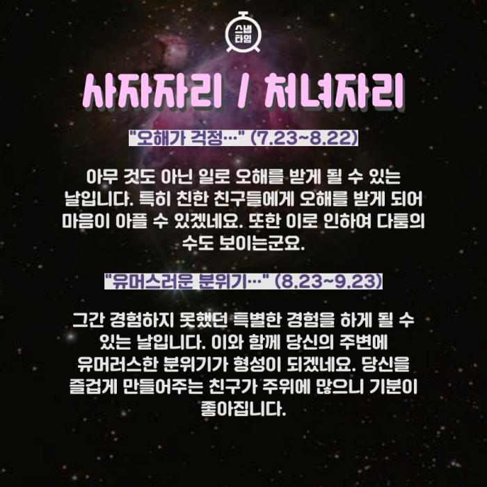 애정운이 나쁘지는 않지만 천칭자리와는 다투게 될 수 있습니다. 딱히 사귀는 사이가 아니더라도 당신 주변에 이성 친구가 자주 찾는 하루이니 애정운이 무르익어 간다고 보여집니다.
