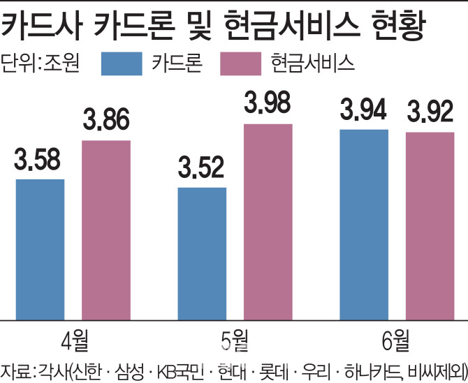 실제 주담대 규제가 강화되고 주식투자 자금용으로 부각하며 신용대출 시장이 크게 확대됐다. 금융위원회에 따르면 지난 7월 금융권 가계대출은 9조원 증가했다. 은행권과 제2금융권에서 각각 7조6000억원과 1조4000억원이 늘었다. 특히 제2금융권 1조4000억원 중에서는 신용대출이 6000억원을 차지했다. 카드사가 취급하는 대출상품인 카드론도 늘었다. 전업 카드사 7곳의 6월 카드론 이용액은 3조9415억원으로 전월 3조5260억원 대비 4155억원(11.7%) 급증했다. 전년 동기에 비해서는 16.2% 증가했다.