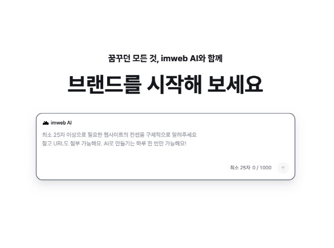 아임웹의 ‘인공지능(AI) 쇼핑몰 빌더’(빌더)는 이상적인 이 상황을 단 3분 안에 현실로 구현해준다. 사용자는 그저 원하는 업종, 제품, 디자인 무드 등을 텍스트로 입력하면 된다.