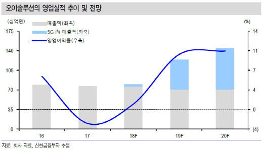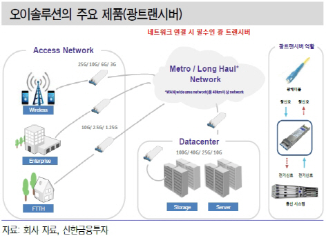 윤창민 신한금융투자 연구원은 “오이솔루션은 국내외 통신사의 5G 인프라 투자 수혜가 예상된다”며 “미국과 중국의 무역분쟁에 따른 주요 고객사(삼성전자, 노키아)의 시장점유율 증가도 전망된다”고 설명했다.