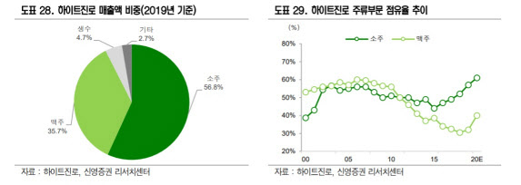 이에 신영증권이 추정한 올해 하이트진로의 연결 기준 매출액은 2조2879억원, 영업이익은 2010억원이다. 각각 전년 동기 대비 12.9%, 127.7% 늘어난다는 전망이다.