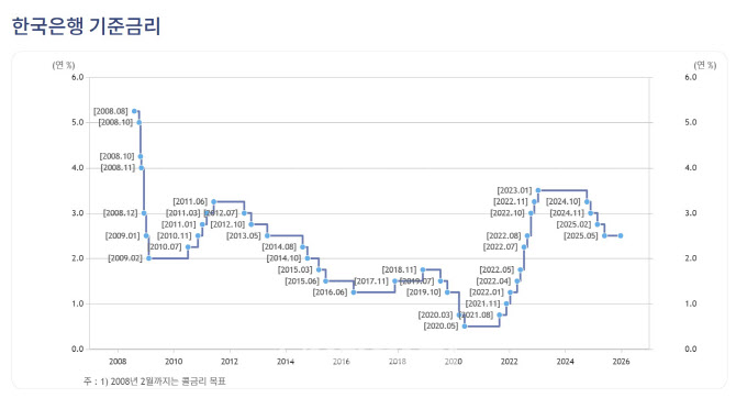 한은은 25일 ‘2026년 통화신용정책 운영방향’을 통해 “기준금리는 물가 및 성장 흐름과 금융안정 상황 변화를 종합적으로 고려하면서 추가 인하 여부 및 시기를 결정”하겠다고 했다.