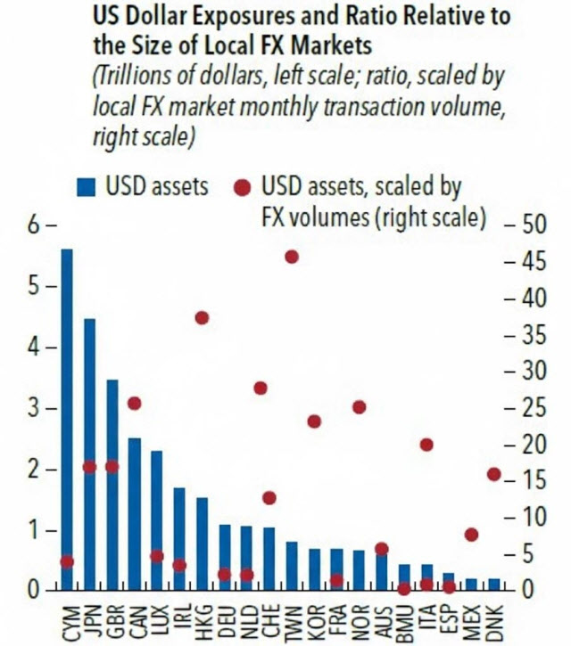 기축통화국이 아닌 한국과 대만에 경각심을 요구하는 지표라는 분석이다. 비기축통화국이 외환시장 대비 환노출 달러자산 배율이 높으면, 달러가치 변동에 따른 충격을 외환시장에서 단기간에 흡수하기 어렵기 때문이다. IMF는 “일부 국가는 달러자산 환노출이 외환시장의 깊이에 비해 불균형적으로 크다”고 지적했다.