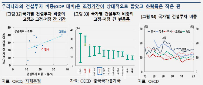 김보희 한은 조사국 차장은 “일본과 중국의 사례에 비춰 보면 경기부양을 위해 건설투자에 과도하게 의존하는 경우, 결국 가계 또는 정부부채 누증을 통해 경기회복력이 저하될 수밖에 없으며 건설투자의 장기 부진도 불가피하다”고 판단했다.