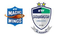 KTF 매직윙스 프로농구단(그림 왼쪽)과 매직엔스 프로게임단(그림 오른쪽) 선수들이 한 자리에서 만나는 것은 이번이 처음이다. KTF는 이번 행사로 청장년층의 프로농구 팬들에게 e스포츠를 알리고, 청소년층의 e스포츠 팬들에게는 프로농구에 대한 관심을 고조시켜 프로 스포츠의 저변을 확대한다는 계획이다.
