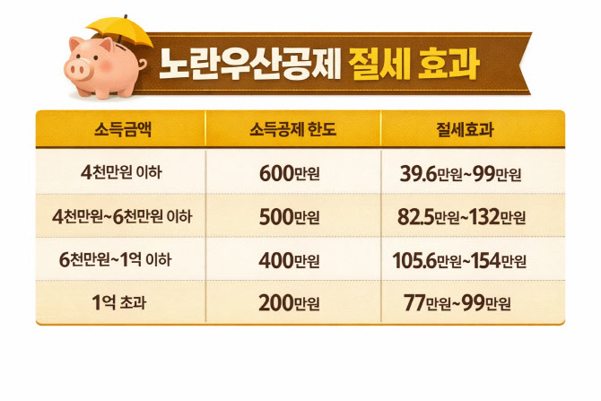 연말 절세 수단으로는 노란우산공제도 빠지지 않는다. 12월에 한 번에 납입하더라도 연간 한도 내에서 전액 소득공제가 가능하다. 여유 자금이 있다면 단순 저축보다 훨씬 효과적인 선택이다.