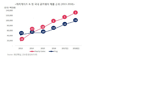 젊은 2030세대에서 브랜드 파워를 갖고 있는 제품으로 파리게이츠가 꼽히고 있다. 작년 파리게이츠 한 브랜드만 100억원의 매출을 달성했을 정도로 파워있는 브랜드로 자리잡았다. 가격대가 프리미엄 존에 포지셔닝 하고 있지만 개성을 중시하는 2030여성 골퍼들에게 인기를 끌고 있다. 올해 골프 관계자들이 뽑은 올해 히트 브랜드 톱 5위에 선정된 파리게이츠는 슬림핏과 화사한 디자인으로 젊은 여성들을 사로잡고 있다.