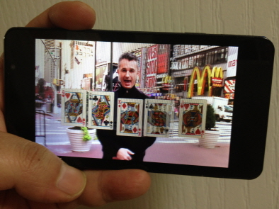 이중 `데런 브라운의 매직쇼`라는 제목의 2분10초짜리 3D 동영상을 누르자, 눈앞에서 실감나는 `카드 마술`이 펼쳐진다. "전작인 옵티머스3D와는 비교가 불가하다"는 LG전자 관계자의 설명이 빈말은 아니다.