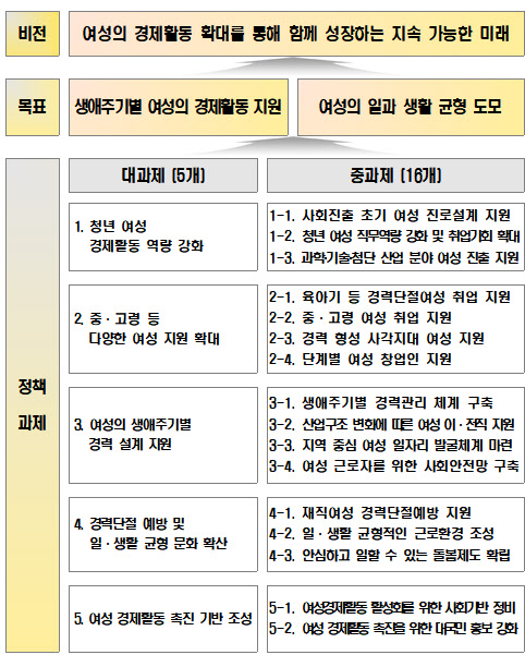 신영숙 여가부 차관은 “이번 기본계획에서는 경력단절 여성에서 모든 여성에 대한 경제활동 지원으로 정책 체계를 전환한 의미가 크다”며 “여성들이 전 생애주기에 걸쳐 경제활동을 수행할 수 있도록 지원받아 우리 사회의 새로운 성장 동력으로 활약할 수 있기를 기대한다”고 말했다.