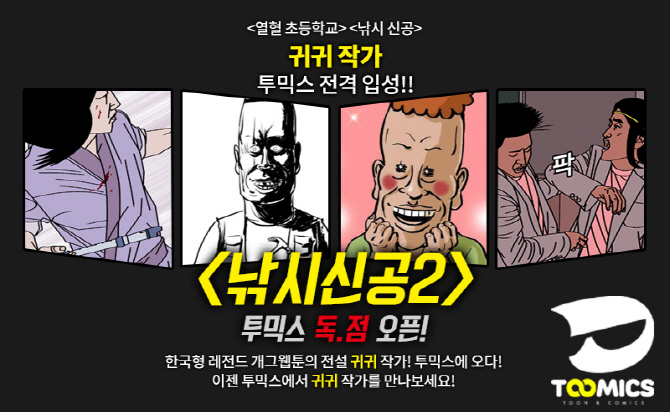 투믹스는 7일 정오부터 ‘열혈초등학교’, ‘야심작 정열맨’, ‘전학생은 외계인’ 등으로 두터운 마니아층을 보유하고 있는 귀귀 작가의 신작 ‘낚시 신공 시즌2’를 독점 연재한다고 밝혔다.