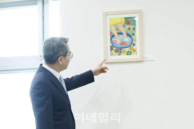 김 지사는 “이 그림을 그린 작가는 지적장애인 여성”이라며 “본인을 돌봐주는 사회복지사가 고마워서 발을 씻겨 주고 싶은 마음으로 그림을 그렸다고 했다. 그 이야기를 듣고 바로 그림을 구매했다”고 했다. 이어 “나도 우리 도민들 발을 씻겨 드리는 마음으로 일을 해야겠다는 생각이 들게 했다”고 덧붙였다.