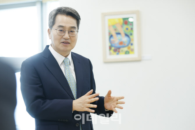 이같은 생각은 그의 집무실 풍경도 바꿔놨다. 평소 집이나 사무실에 액자 등을 걸어놓는 걸 싫어하던 김 지사는 태어나서 처음으로 돈을 주고 산 그림을 집무실 책상 앞 벽에 걸어뒀다. 물이 담겨 있는 대야에 치마를 입은 인물이 발 담그고 있는 모습의 그림 배경은 알록달록한 꽃들로 채워졌다. 돈을 주고 샀다기에는 다소 서툰 솜씨다.