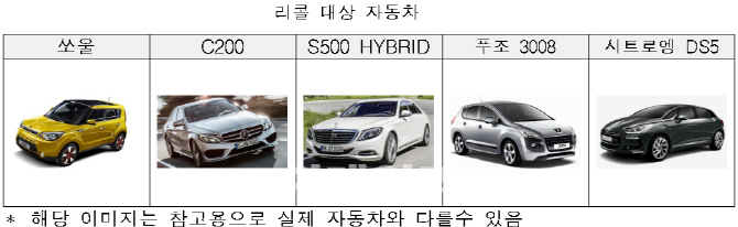이번 리콜과 관련해 각 제작사에서는 차량 소유자에게 우편으로 시정 방법 등을 알릴 예정이다. 또 리콜 시행 전에 자동차 소유자가 결함내용을 자비로 수리한 경우에는 제작사에 수리한 비용에 대한 보상을 신청할 수 있다. 리콜과 관련한 문의사항은 기아자동차(080-200-2000), 메르세데스벤츠코리아(080-001-1886), 한불모터스(02-3408-1655~7) 등으로 문의하면 된다.