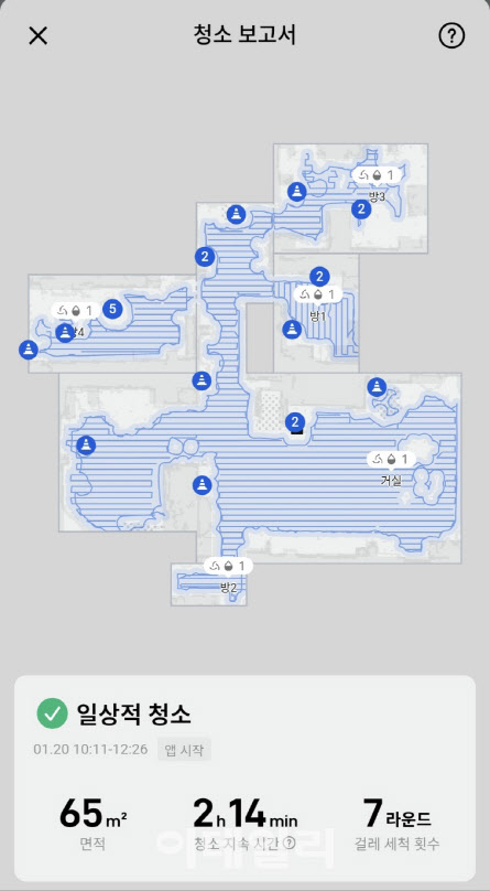 앱에서 우리집 청소 구역을 자세히 볼 수 있고, 부속품 교체 시기 등도 한 눈에 알아볼 수 있다. 또한 청소를 잘하고 있는지 실시간으로 영상까지 볼 수 있다.