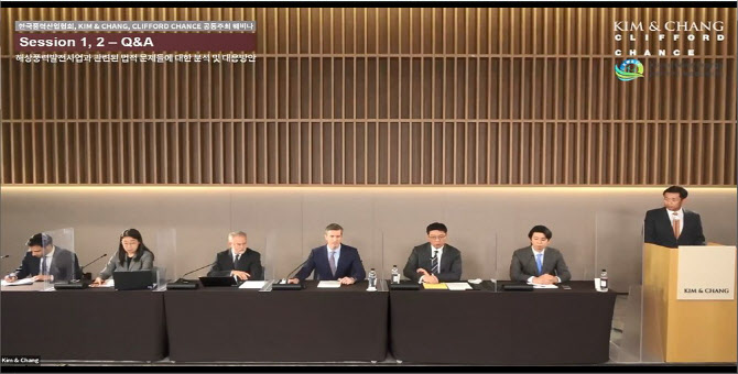 이번 웨비나는 김앤장 국제 프로젝트·플랜트·조선그룹과 에너지그룹 및 클리포드 챈스의 분쟁그룹 및 에너지그룹이 협업해 준비했다. 웨비나는 △프로젝트 수행 측면에서의 해상풍력발전 사업에 대한 주요 고려사항 △분쟁 예방 측면에서의 해상풍력발전 사업 주요 리스크 분석의 주제를 중심으로 진행됐다.