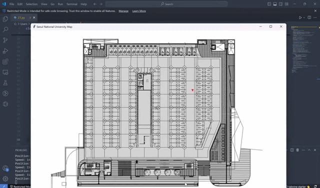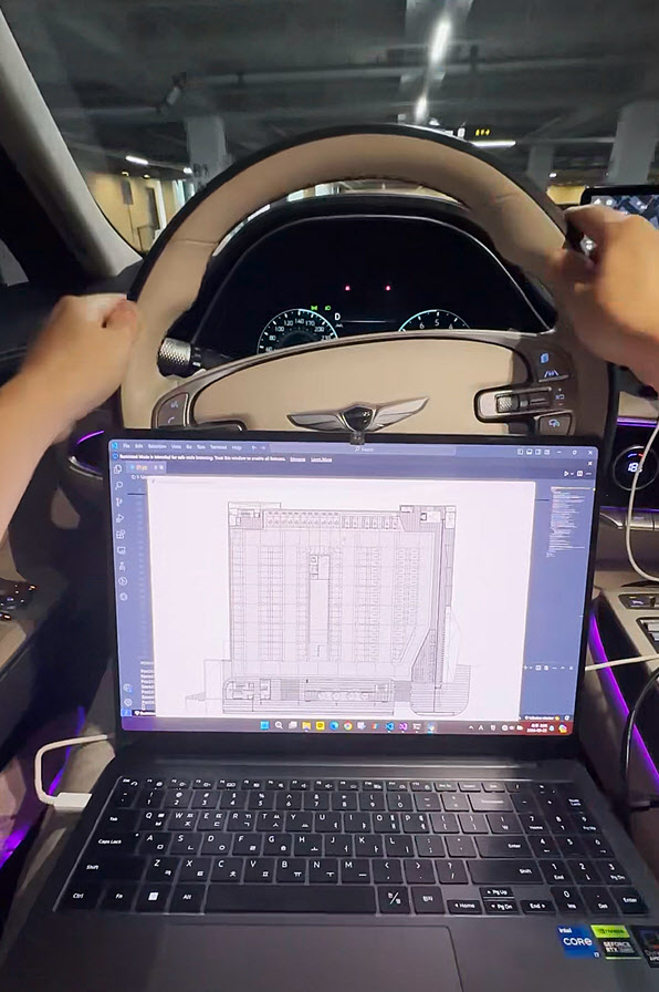 [이데일리 강민구 기자] 서울대의 한 지하주차장에서 자동차 중앙 USB 포트에 노트북을 연결하자 건물 평면도 위에 빨간 점이 나타났다. 자동차를 움직일 때마다 그 점은 실시간으로 위치를 바꿨고, 주차장 칸별 면적도 손쉽게 확인할 수 있었다. GPS가 닿지 않는 지하에서도 차량의 위치를 파악해 자율주행 주차가 가능함을 보여준 것이다.