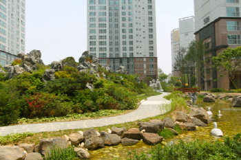 1억원이 넘는 명품 느티나무를 비롯해 소나무 4000그루를 심어 단지의 격을 높였으며 단지 중앙에는 잔디광장과 석가산도 조성했다.