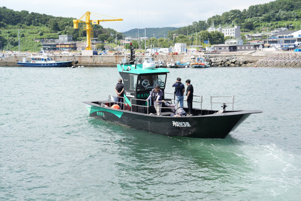 승선에 나선 한 어업인은 “배가 가볍고도 견고하다”며 “앞으로 현장의 어민들에게 호응이 좋을 것 같다”고 말했다. 가볍고, 빠른 속력을 갖춘데다 설계 과정에서 AI가 활용된다면 제작 효율성까지 높아질 수 있는 대목이다.