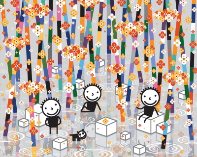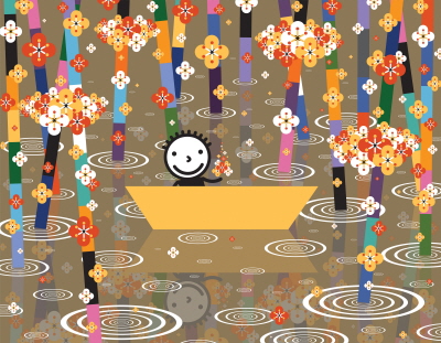 [이데일리 오현주 기자] 삐죽이 솟은 머리카락은 항상 10개다. 동그란 하얀 얼굴에 네모난 까만 몸통을 가졌다. 혼자 있을 때가 많지만 똑같이 생긴 친구들과 어울리기도 한다. 알록달록한 매화 꽃잎이 색동 띠의 대나무 사이에 엉겨붙어 있는 숲에 자주 간다. 주인을 닮은 강아지가 따를 때도 있다. 가끔은 하늘을 날기도 하지만 작은 배에 올라타는 것을 좋아하고, 오색 무지개나 회색 상자에 앉고 서는 것도 즐겨한다. 그러나 무엇을 해도 그는 한결 같다. 항상 웃고 있다. `동구리`다.