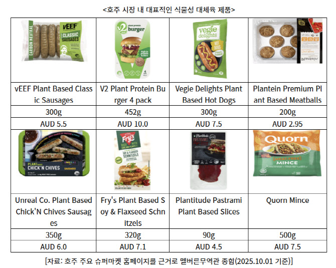호주 소비자들이 가장 많이 찾는 식물성 대체육 제품은 햄버거 패티(37%), 다진 고기 및 미트볼(30%), 소시지(27%) 등 전통적인 육류 제품을 대체하는 형태가 주를 이룬다. 그러나 시장 확대에는 여전히 장애 요인도 존재한다. 다만 소비자들은 맛의 한계(46%), 높은 가격(37%), 가공식품에 대한 인식(31%), 식감 문제(30%) 등을 재구매를 망설이는 이유로 꼽았다.